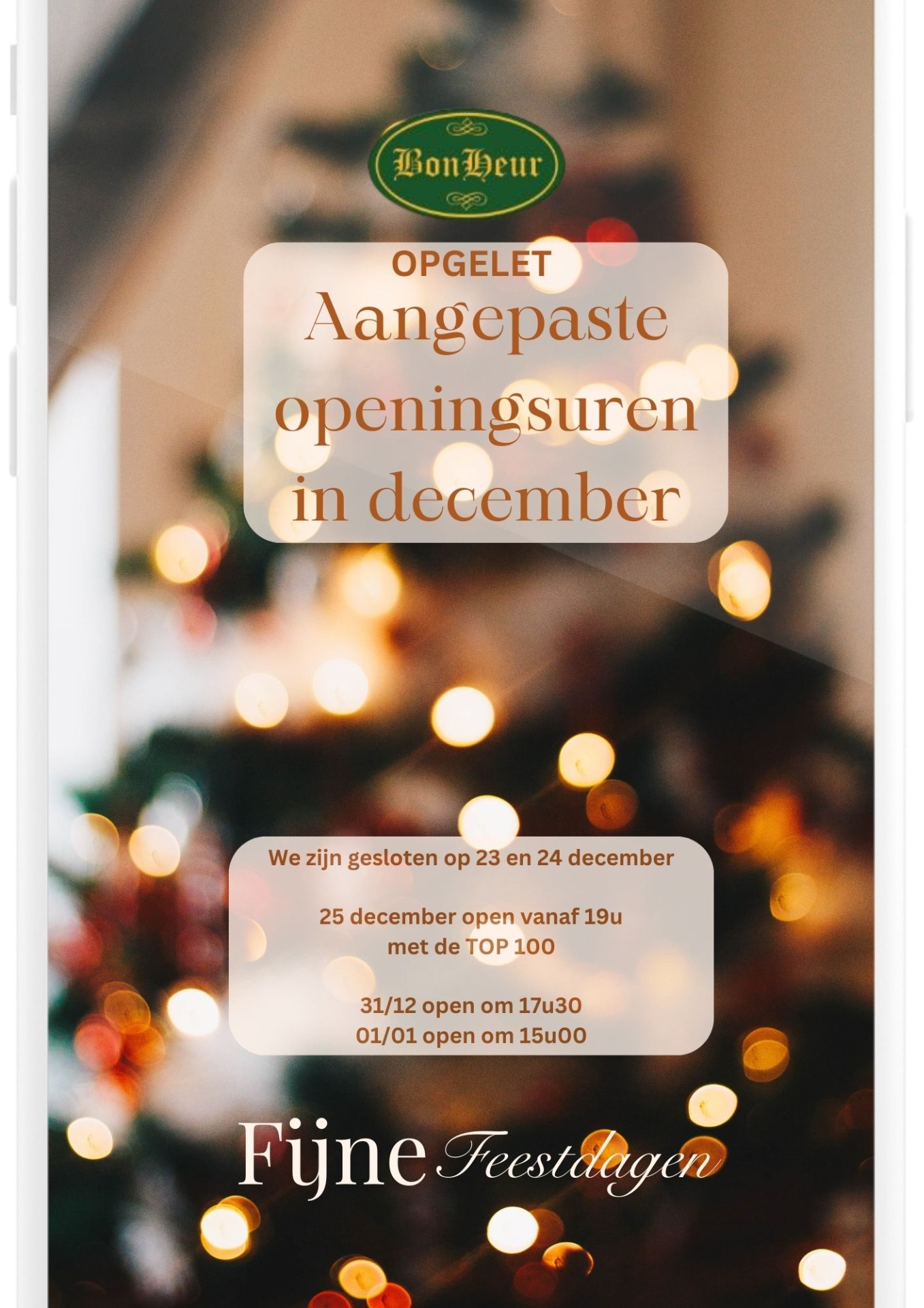 🎄 Aankondiging: Feestdagen = aangepaste openingstijden!
